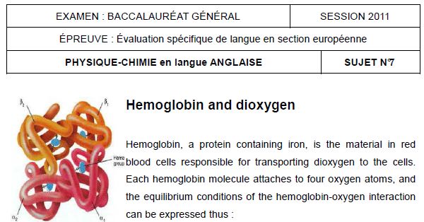 Banque de sujets de l’épreuve spécifique de langue en section européenne, physique-chimie en langue anglaise, qui s’est déroulée en 2011 dans l’académie de Montpellier.