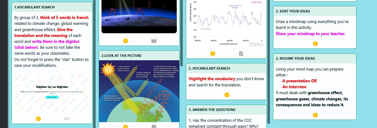 - Réalisation d’un glossaire sur le changement climatique à l’aide d’un outil d’écriture collaborative ;
