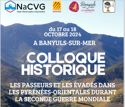 Ce colloque est organisé par l'ONaCVG des Pyrénées Orientales en partenariat avec le Centre Départemental de la Mémoire 66, à Banyuls-sur-Mer les 16 et 17 octobre 2024. Colloque organisé par l'ONaCVG des Pyrénées Orientales en partenariat avec le Centre Départemental de la Mémoire 66, à Banyuls-sur-Mer les 16 et 17 octobre 2024, intitulé Les passeurs et les évadés dans les Pyrénées-Orientales durant la seconde guerre mondiale, il abordera les réseaux d'évasion vers l'Espagne, les enjeux diplomatiques et les actions locales de résistance, à travers les interventions d'historiens.