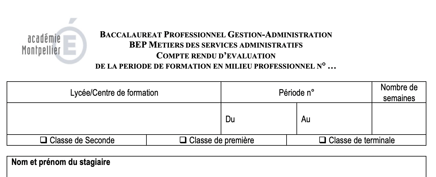 Compte rendu officiel à utiliser lors des visite de PFMP pour les élèves de Bac Pro GA