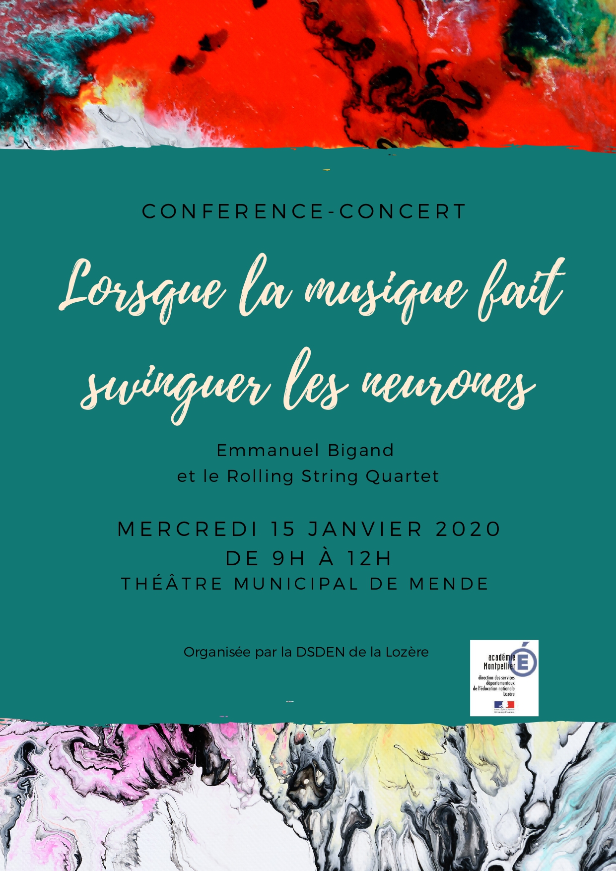 Véritable conférence-concert, le spectacle alterne explications scientifiques et airs instrumentaux pour mieux faire ressentir les effets de la musique sur votre cerveau. Derrière ce projet, un homme : Emmanuel Bigand, enseignant-chercheur à l’université de Bourgogne et… violoncelliste, accompagné du Rolling String Quartet. Quand science et musique combinent leurs effets, le cerveau fait effectivement swinguer ses neurones…