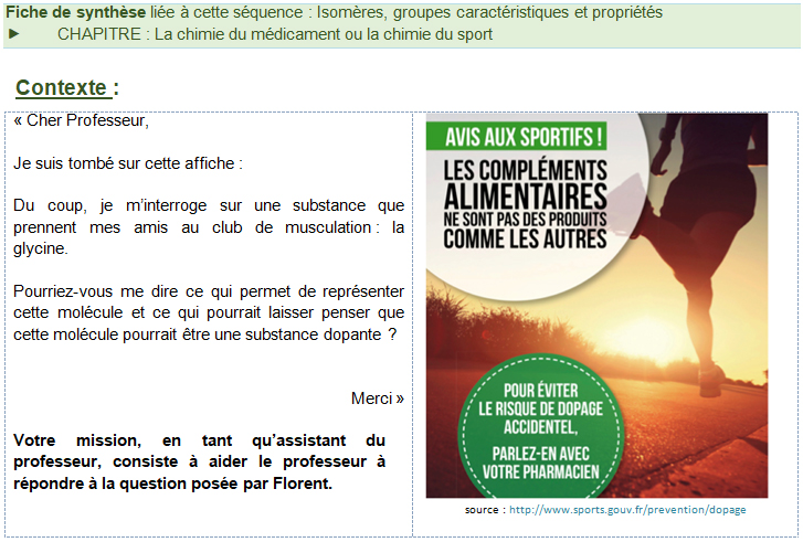 La version 2 initiée par un questionnement scientifique faisant apparaître le terme isomère (connaissance non explicitement attendue en classe de 2de) s'adresse plutôt à de futurs scientifiques, tandis que la version 1 initiée par un questionnement ancré sur une affiche du quotidien réel peut donner davantage de sens à l'enseignement de la physique-chimie surtout pour les futurs non scientifiques.