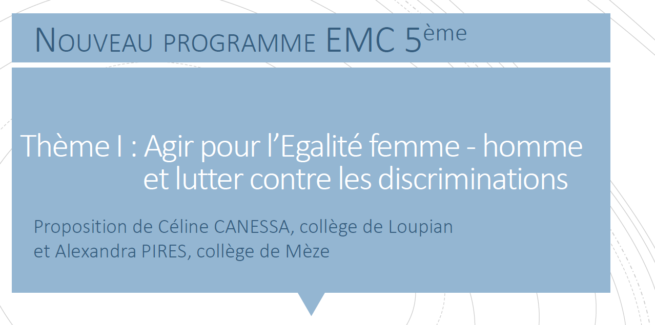 EMC 5ème - Thème I : Agir pour l’Égalité femme - homme et lutter contre les discriminations