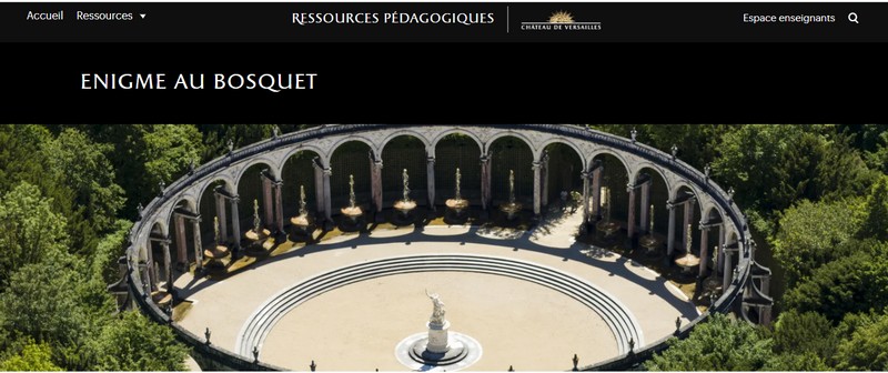 Énigme au bosquet est un jeu à réaliser en classe durant lequel les élèves collectent des informations dans les bosquets des jardins de Versailles sous forme de défis, afin de résoudre une énigme finale ayant pour thème le développement durable à Versailles.