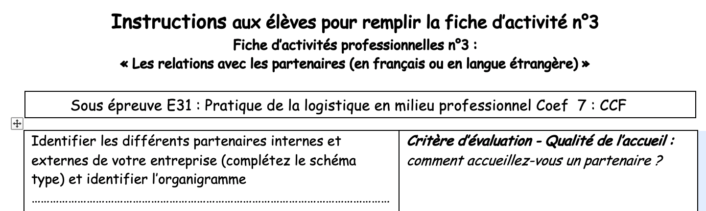 Voici un document qui vous permettra de mieux appréhender la fiche n°3 utilisée lors des CCF du Bac Pro Logistique.