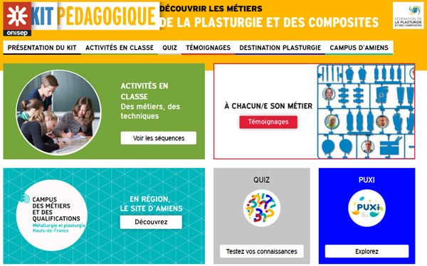 Dans le cadre d’un partenariat entre le MEN et OPCDA DEFI (OPCA pour le Développement de l'Emploi et de la Formation dans l'Industrie), la fédération de la plasturgie et des composites nous informe d’une action à destination des élèves et enseignants : il s’agit d’un kit pédagogique, conçu par l’ONISEP, visant à faire découvrir les métiers de la plasturgie et des composites.