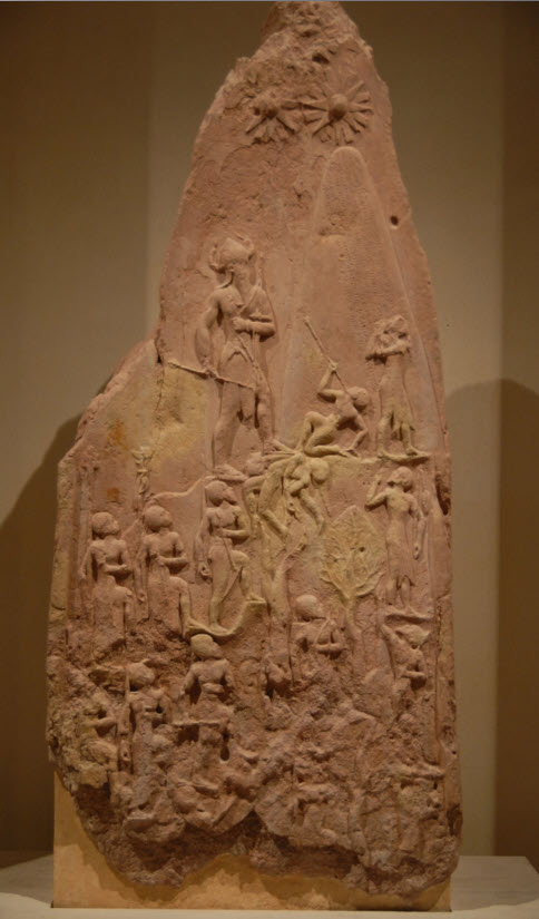 Ce bas-relief en calcaire rose datant de vers 2250 av. J.-C. fut découvert sur le site archéologique de la cité de Suse en Iran. Cette stèle, d’une Hauteur de 2,10 mètres, est conservée au Musée du Louvre à Paris. Son excellent état de conservation nous permet de détenir une information complète.