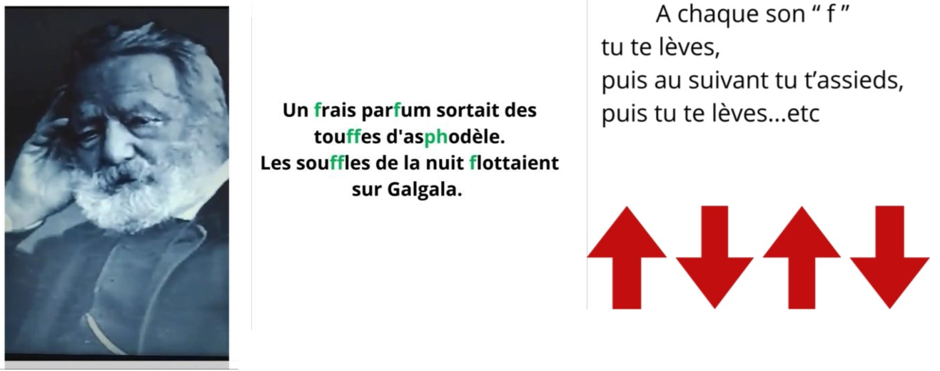 L’activité se passe, elle, en classe, à faire scander aux élèves les occurrences de l’allitération en fricatives avec le corps, en se levant et en se rasseyant.