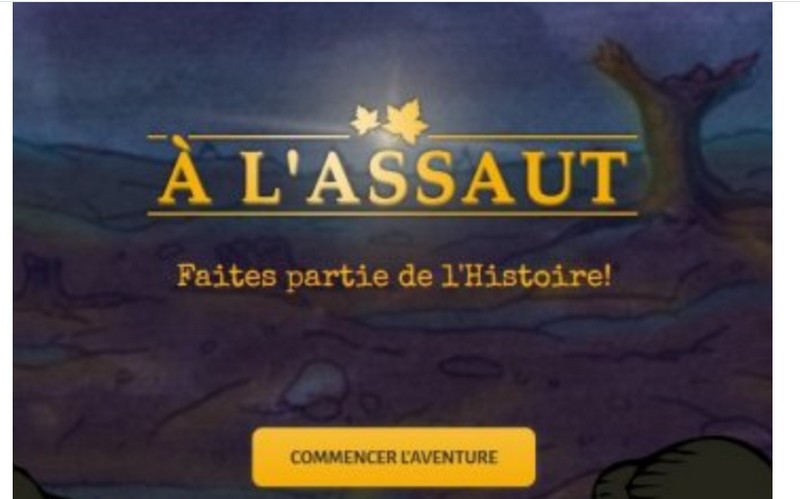 Utilisation du jeu "À l'assaut" proposé par le Musée canadien de la guerre. La séance de jeu se fait après un cours en classe et une étude de cas sur la bataille de Verdun. Les élèves jouent avec un nombre limité de questions pour profiter au maximum de l’expérience de jeu. Ils prélèvent des informations (les mots définis sont soulignés dans le jeu) et notamment du vocabulaire des tranchées qu’ils doivent prélever et réemployer ensuite dans la rédaction d’un développement construit sur la vie dans les tranchées réalisé à la maison.