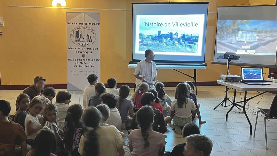 Animé par Nicolas de Craene, professeur au lycée Lucie AUBRAC, un diaporama, une vidéo, une présentation d'authentiques objets trouvés lors de fouilles, ont constitué un enseignement dispensé avec pédagogie et simplicité à une cinquantaine d'élèves de CE2, CM1, CM2 encadrés par leurs professeures. Tous ces jeunes connaissent déjà bien l'histoire de leur village et ce sont montrés très curieux et attentifs.