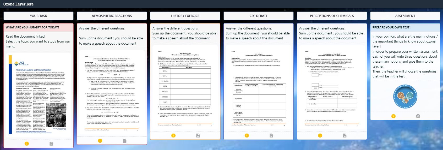 L’activité proposée est une séquence dans laquelle les élèves travaillent sur la thématique de la couche d’ozone. Ils ont accès à un DIGIPAD sur « la Digitale » (https://ladigitale.dev/) contenant les ressources. Le travail se fait par groupes de 2 ou 3 élèves. La finalité du travail est la réalisation d’une présentation orale ainsi que d’un support visuel à destination d’un public d’élèves de 3ème qui souhaitent intégrer la section DNL en 2nde.