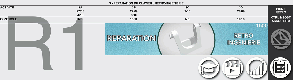 | Organiser les éléments principaux du cours d'un élève | Rendre aisément identifiable l'accès à une activité. Mettre en évidence le lien entre une activité, la compétence travaillée, la synthèse l'entraînement et l'évaluation. |