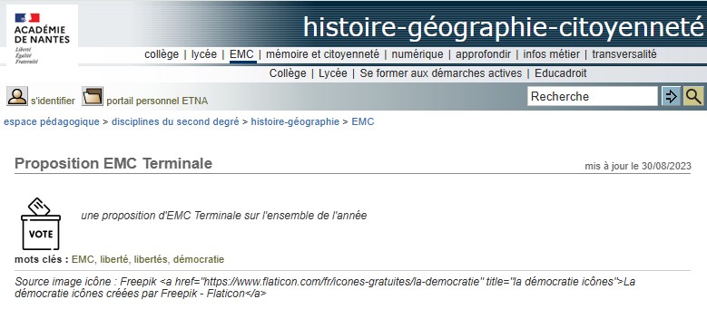 Une proposition d'EMC qui couvre l'année de Terminale. Il s'agit de faire travailler les élèves autour du "magasin de la démocratie".