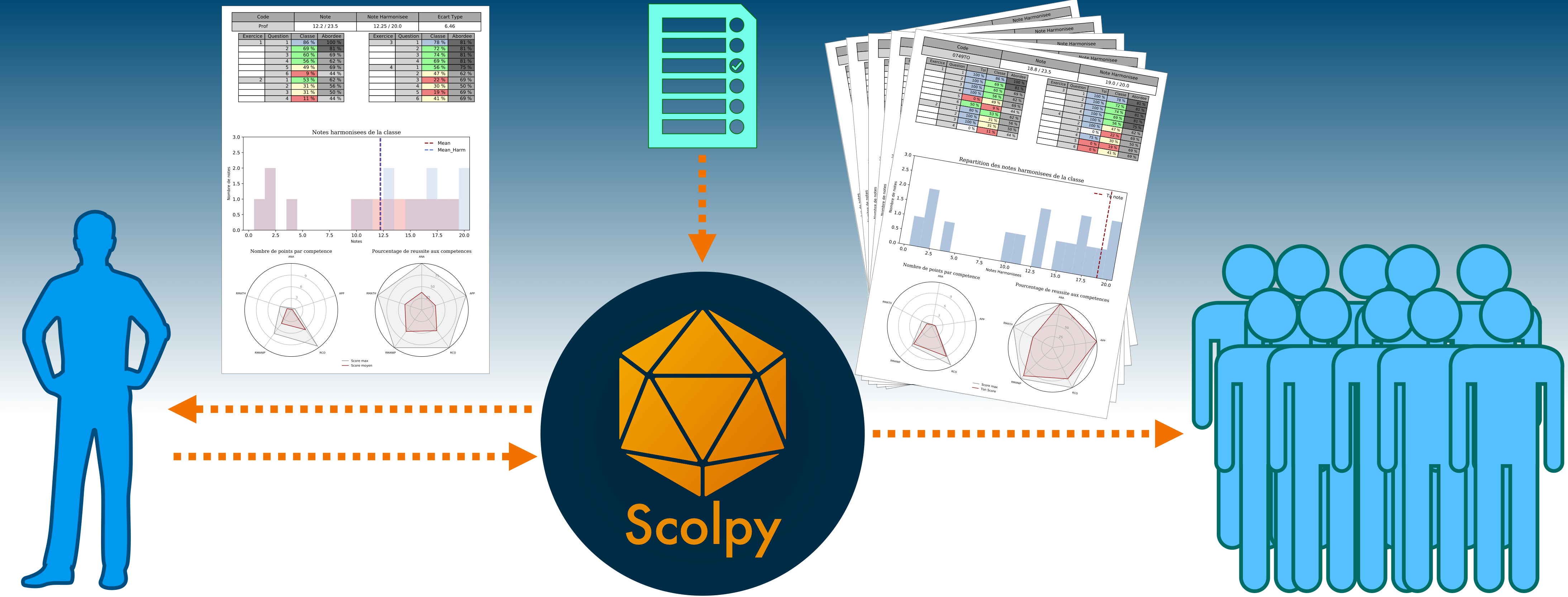 Johanny Martinez du lycée Albert Camus à Nîmes, propose pour l'enseignant, un outil informatique Scolpy qui va lui permettre de piloter, changer les barèmes et harmoniser automatiquement et sans effort les notes obtenues par les élèves.