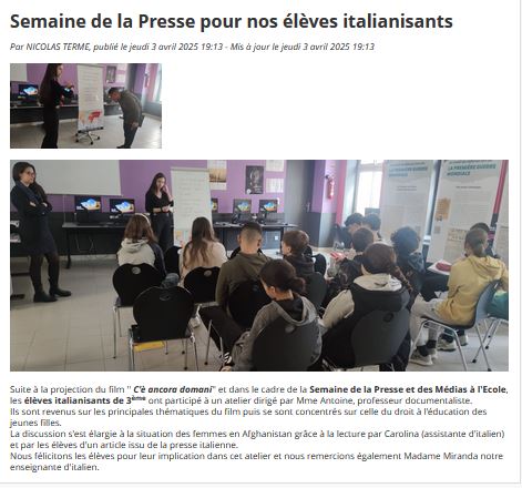 Collège Feuchères Nimes, Mme Miranda, LV italien
